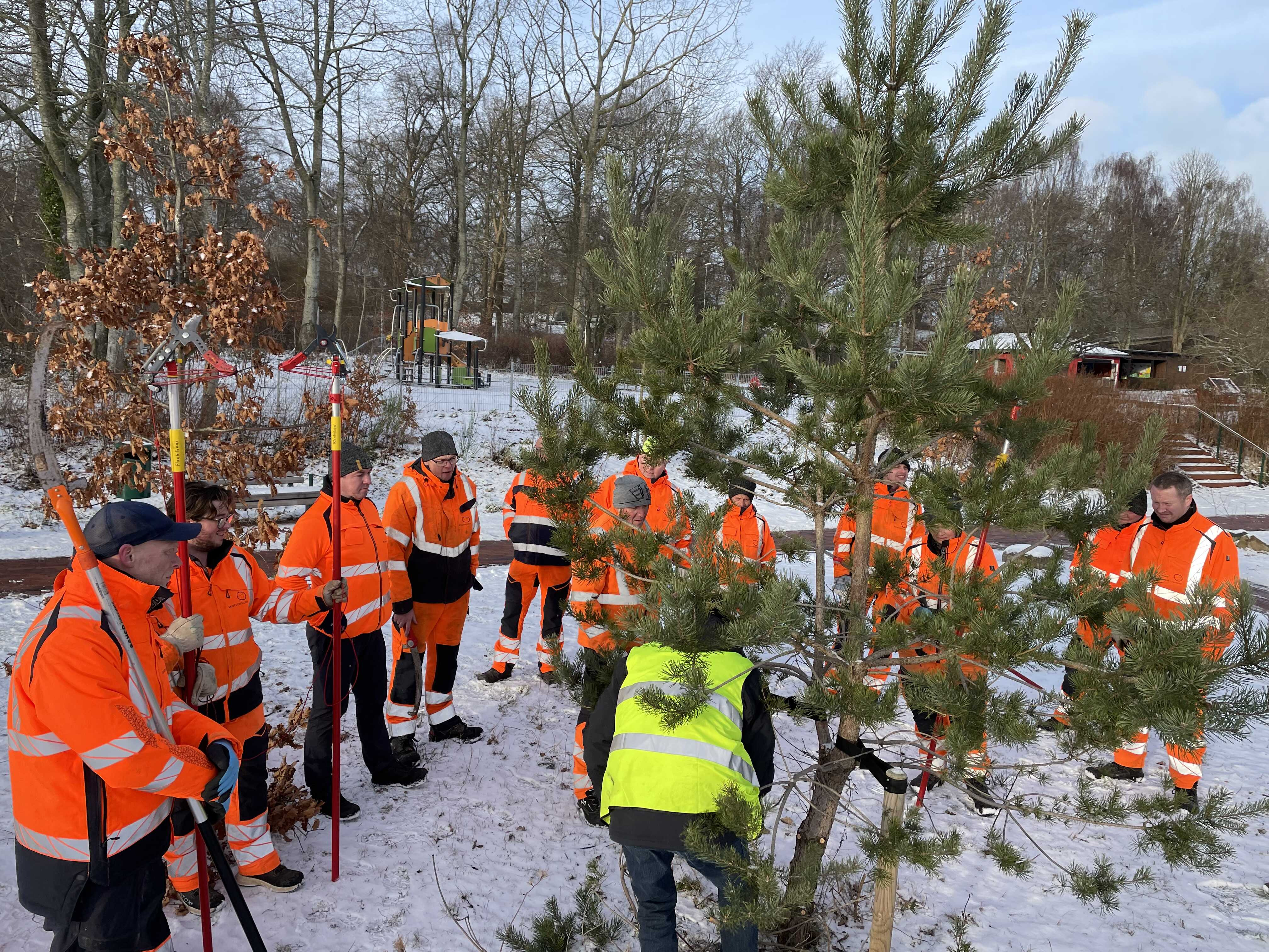 Beskæring af træer er en essentiel vinteropgave. Nogle træer beskæres for at skabe ensartede forløb, som f.eks. linde-alléen langs Viborgvej.