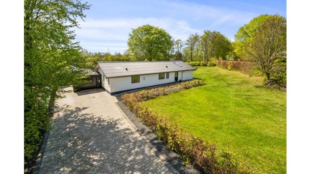 De dejlige rammer fortsætter udenfor, hvor udemiljøet udgøres af et skønt terrassemiljø, en stor græsplæne og en bålplads – haven kræver derfor ikke mange timers vedligeholdelse, og familielivet kan derfor være i centrum. Når dagene begynder at blive koldere, kan haveredskaberne og loungemøblerne placeres i skuret. Derudover opvarmes ejendommen med en nyere luft-til-vand-varmepumpe, så I kan se frem til lave driftsudgifter.